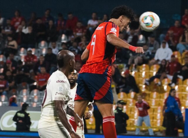 Bastó la primera llegada del rojo, balón arriba y José Ortíz zaguero del Dim se elevó entre una defensa quedada y marcó el 1 a 0 pasando de un equipo somentido en comienzo a ganador a los 21 minutos.