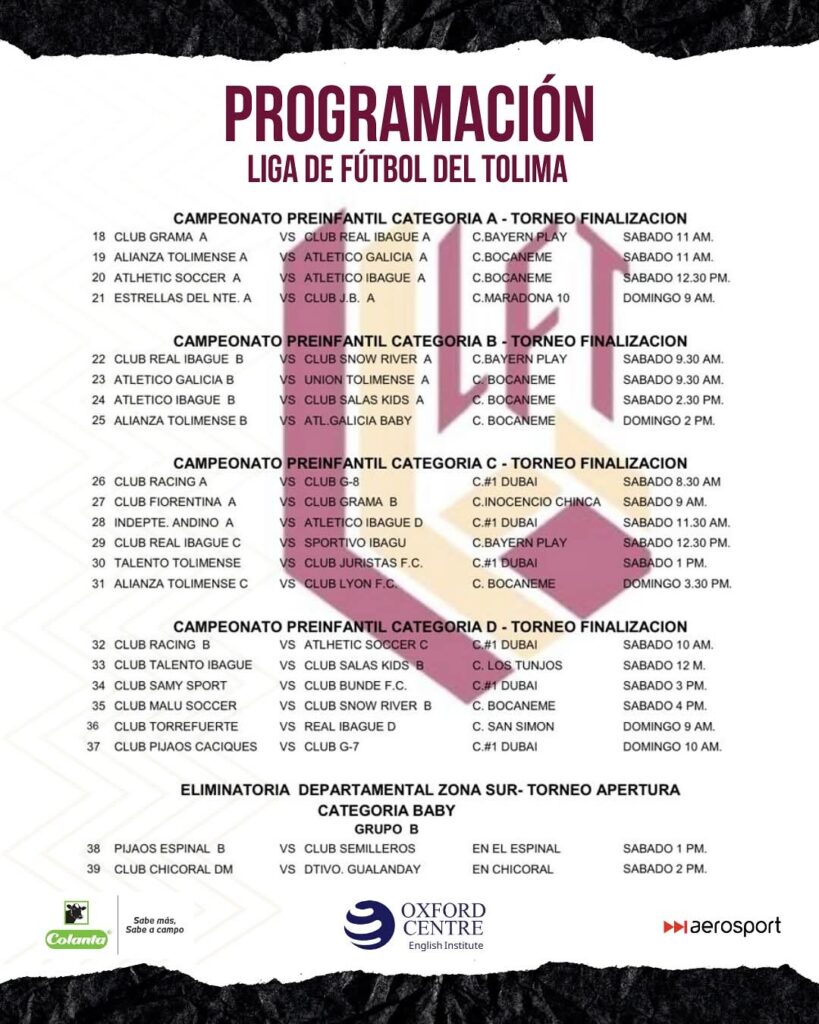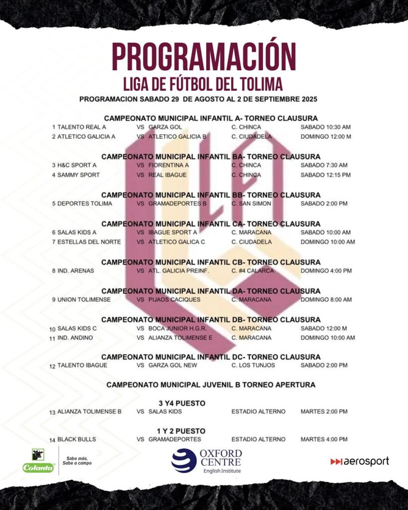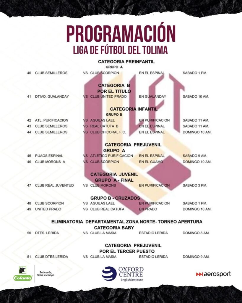 Espijao.com y la Liga de Fútbol del Tolima traen la programación oficial finalizando mes, sábado 30 y domingo 31 de agosto de 2025.