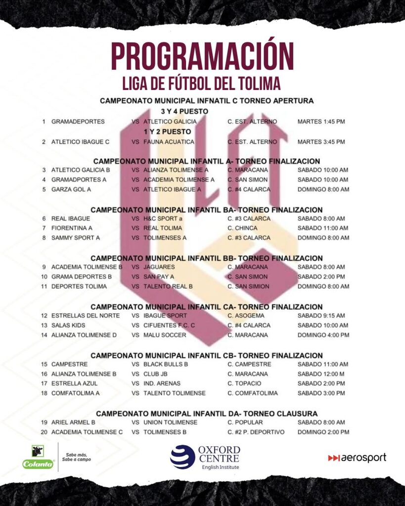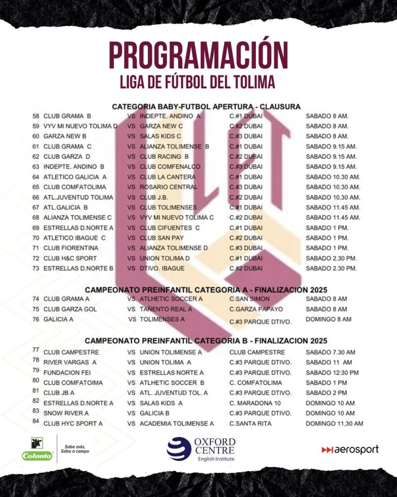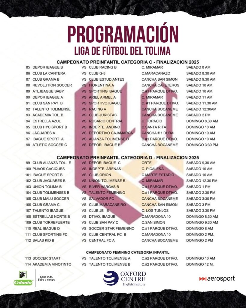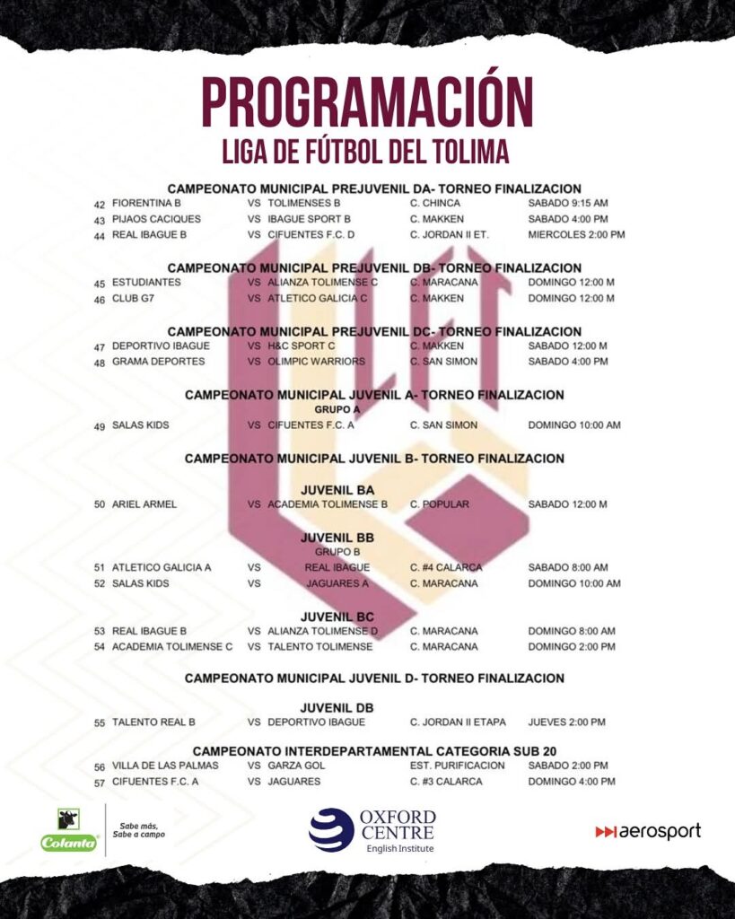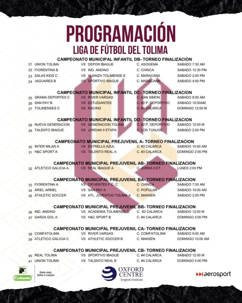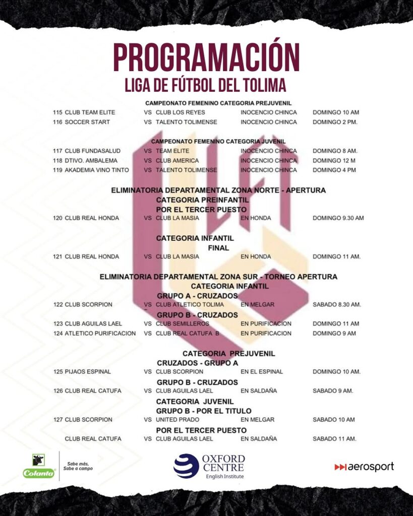 Espijao.com y la Liga de Fútbol del Tolima traen la programación oficial para el fin de semana, sábado 13 y domingo 14 de septiembre de 2025.