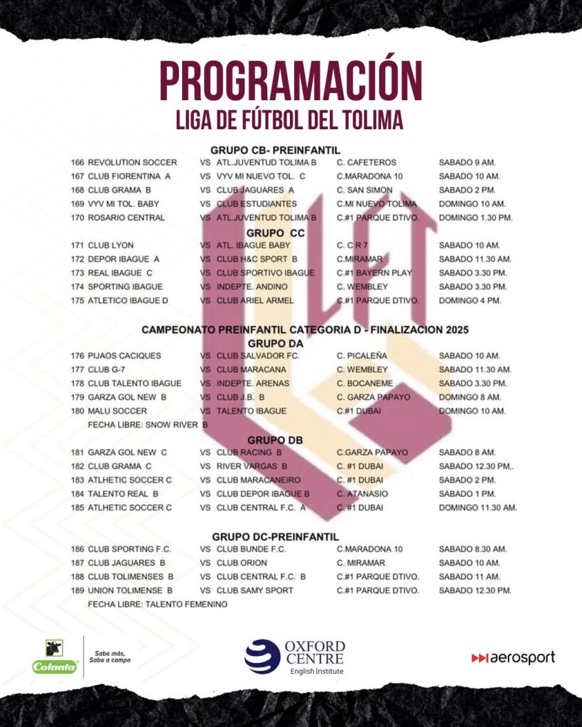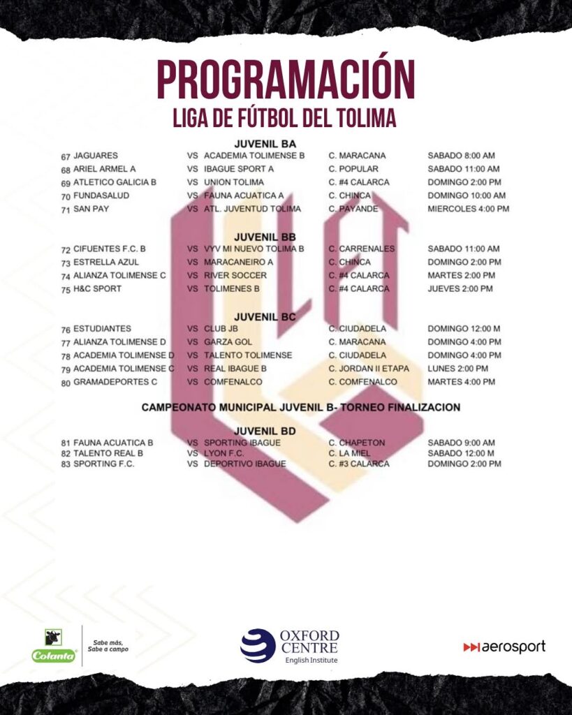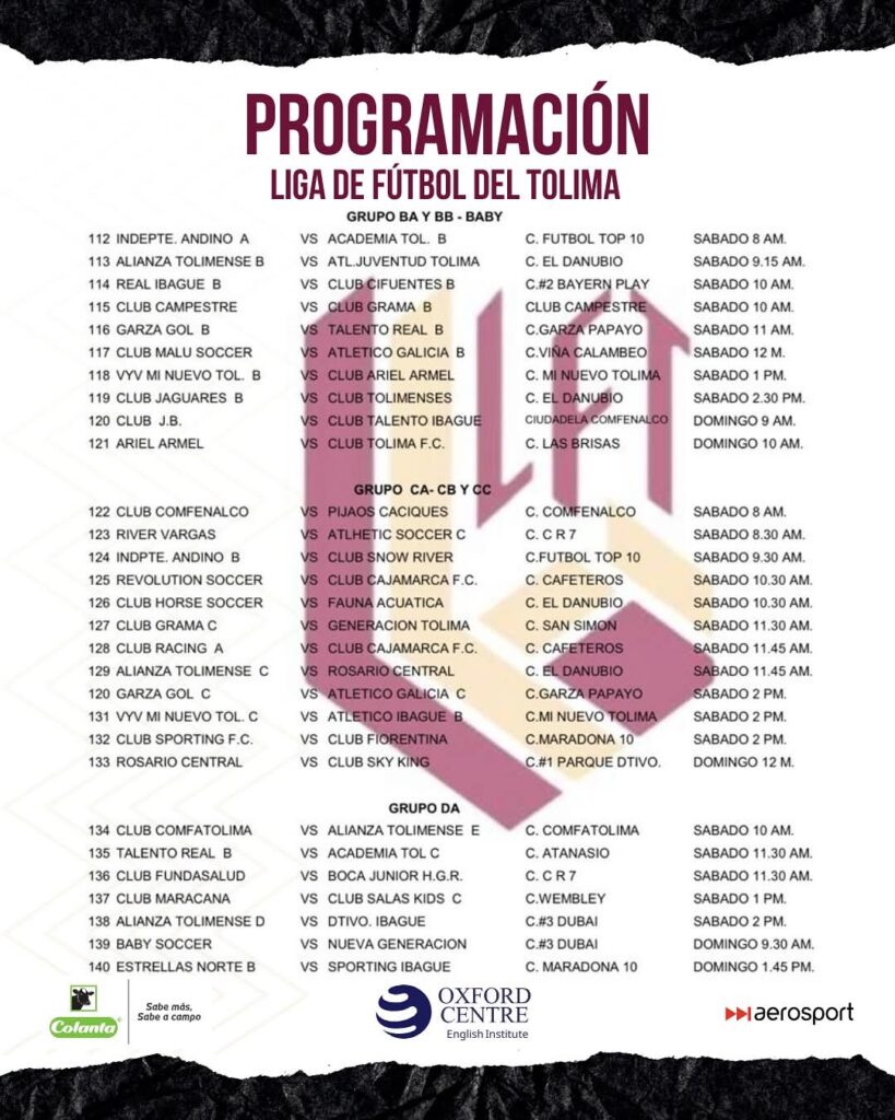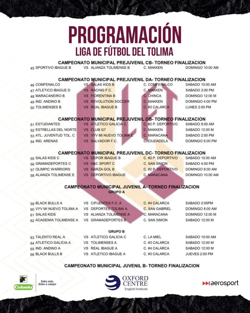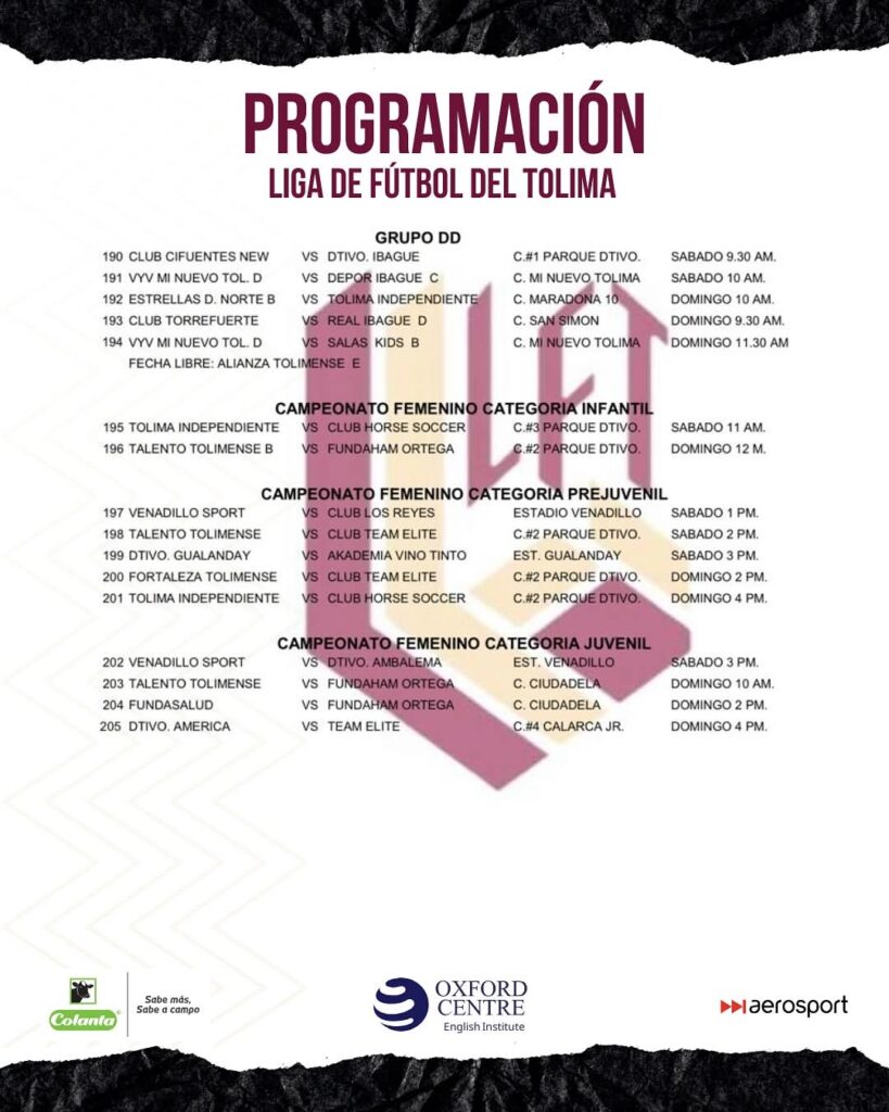 Espijao.com y la Liga de Fútbol del Tolima traen la programación oficial para el fin de semana, sábado 25 y domingo 26 de octubre de 2025.