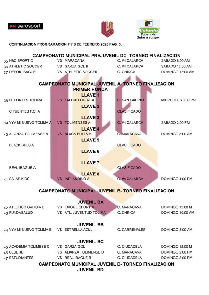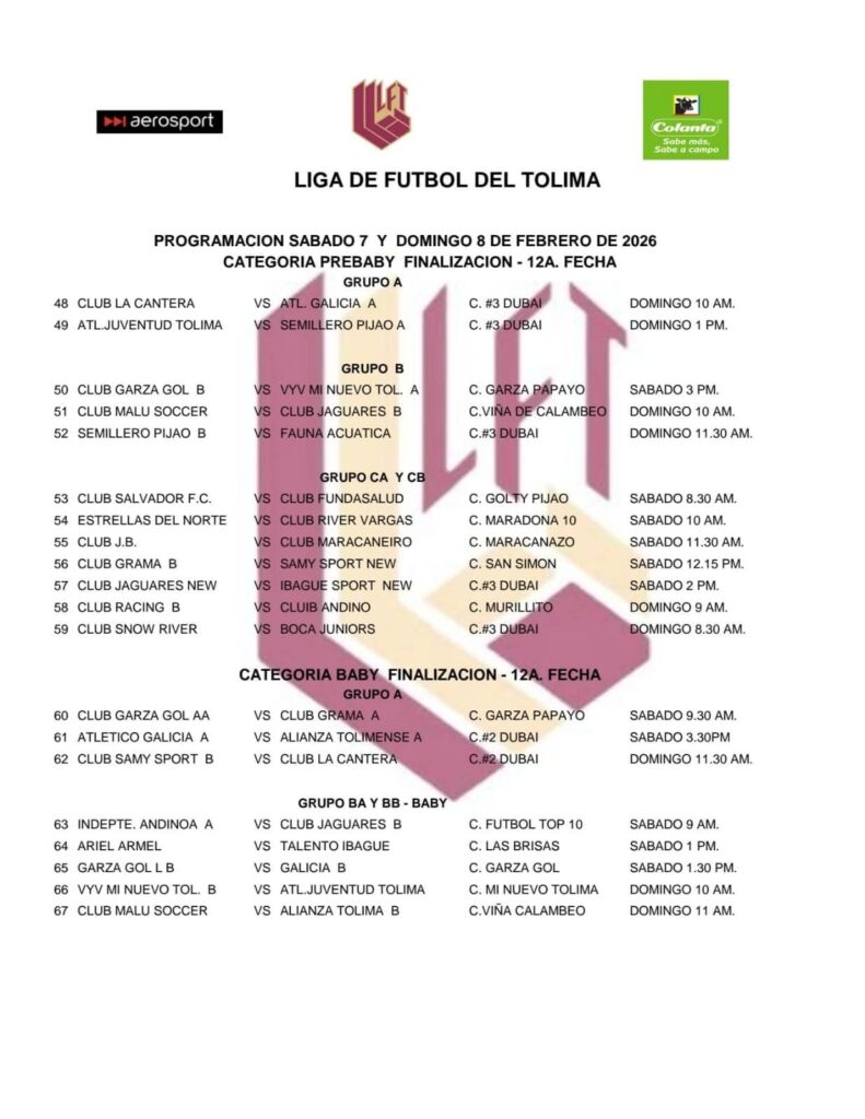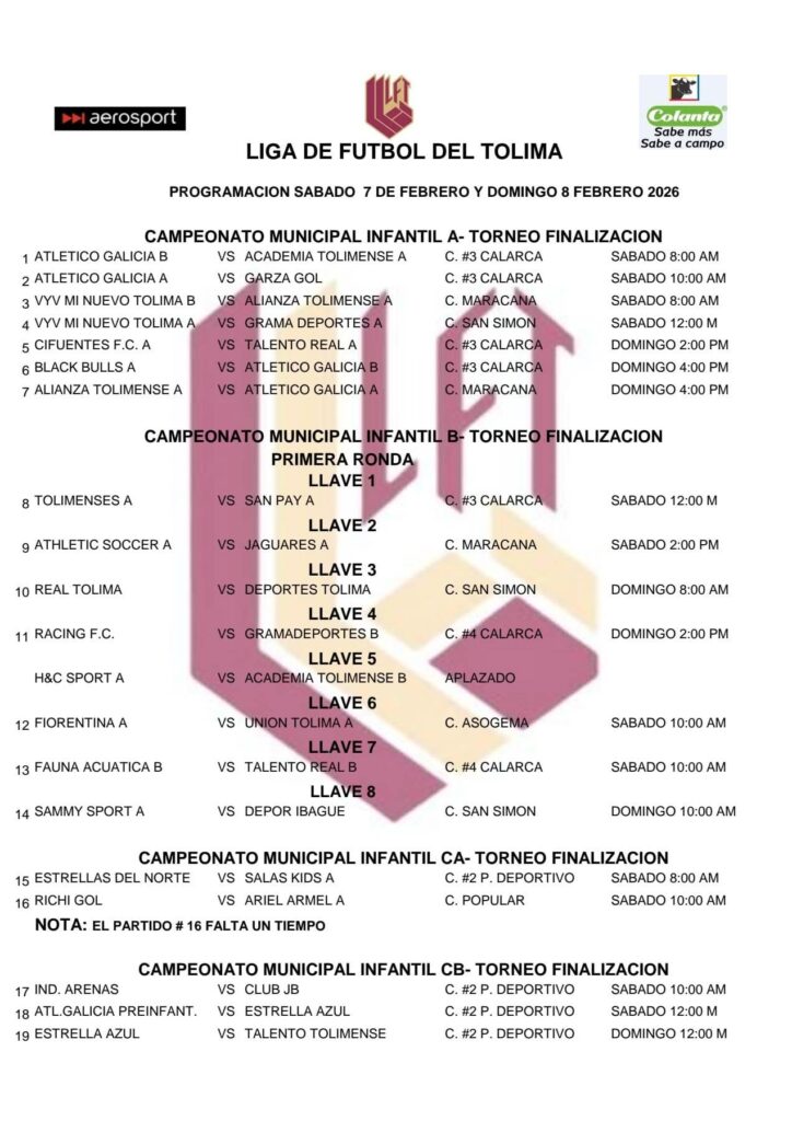 Espijao.com y la Liga de Fútbol del Tolima traen la programación oficial con todas las fechas, horarios y escenarios de este fin de semana.