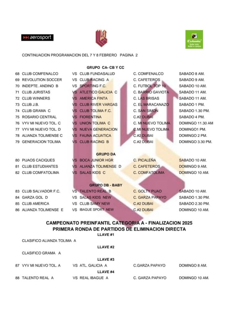 categoría pre baby – baby – pre infantil masculino y femenino, torneo finalización, para este sábado 7 de Febrero y domingo 8 de Febrero de 2026.